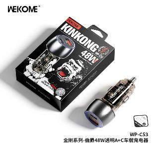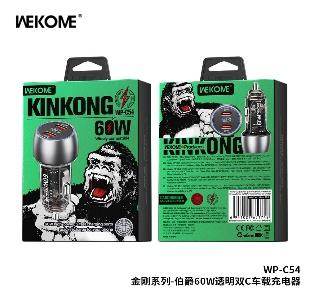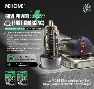 The Wekome WP-C54 Transparent Car Charger (C+C) 60W is a high-speed charging solution designed for on-the-go users. Its dual USB-C PD ports provide 30W each, allowing simultaneous fast charging for two devices while driving.