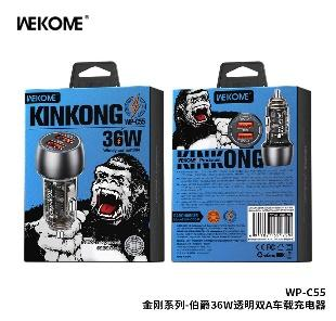The Wekome WP-C55 Transparent Car Charger (A+A) 36W is designed for users who need fast and reliable charging while driving. With dual USB-A ports supporting QC 3.0 fast charging (18W each), you can charge two devices simultaneously without compromising speed.